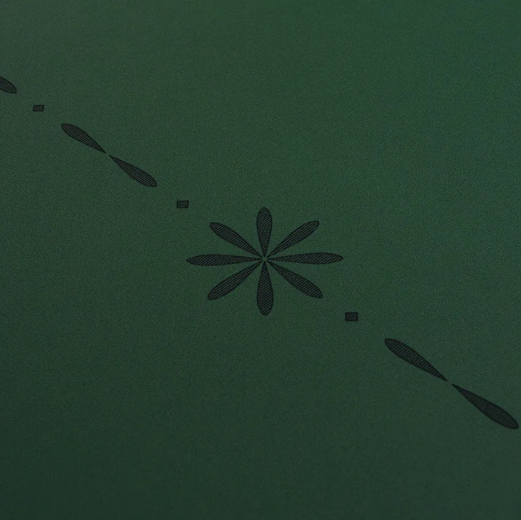 • มีเส้นบอกตำแหน่งที่กึ่งกลางบนเสื่อเพื่อช่วยบอกตำแหน่งการจัดวางร่างกายขณะฝึกโยคะ